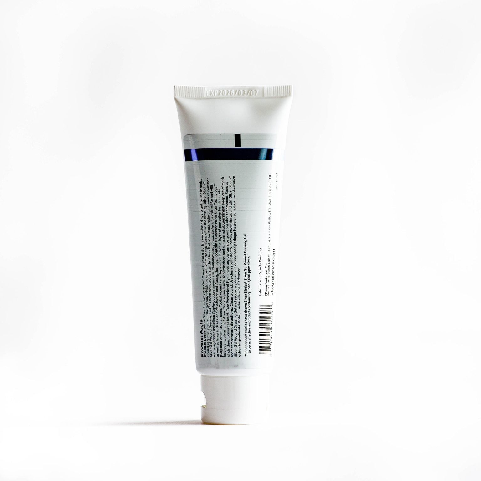 Silver Biotics Wound Dressing Gel is a topical antimicrobial layer of protection for minor cuts, lacerations, skin irritations, 1st and 2nd degree burns, and sunburn relief.
